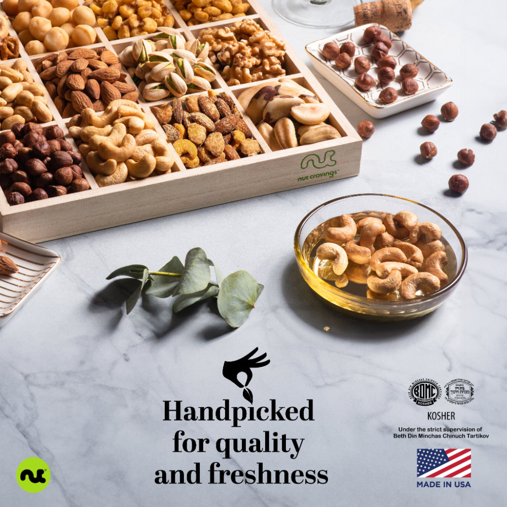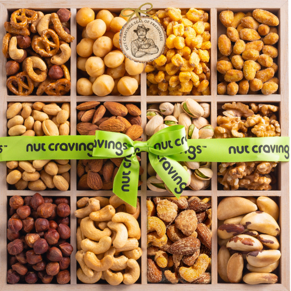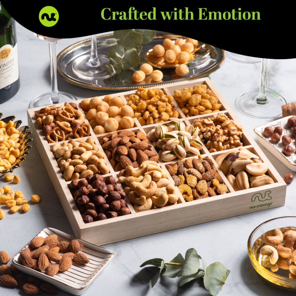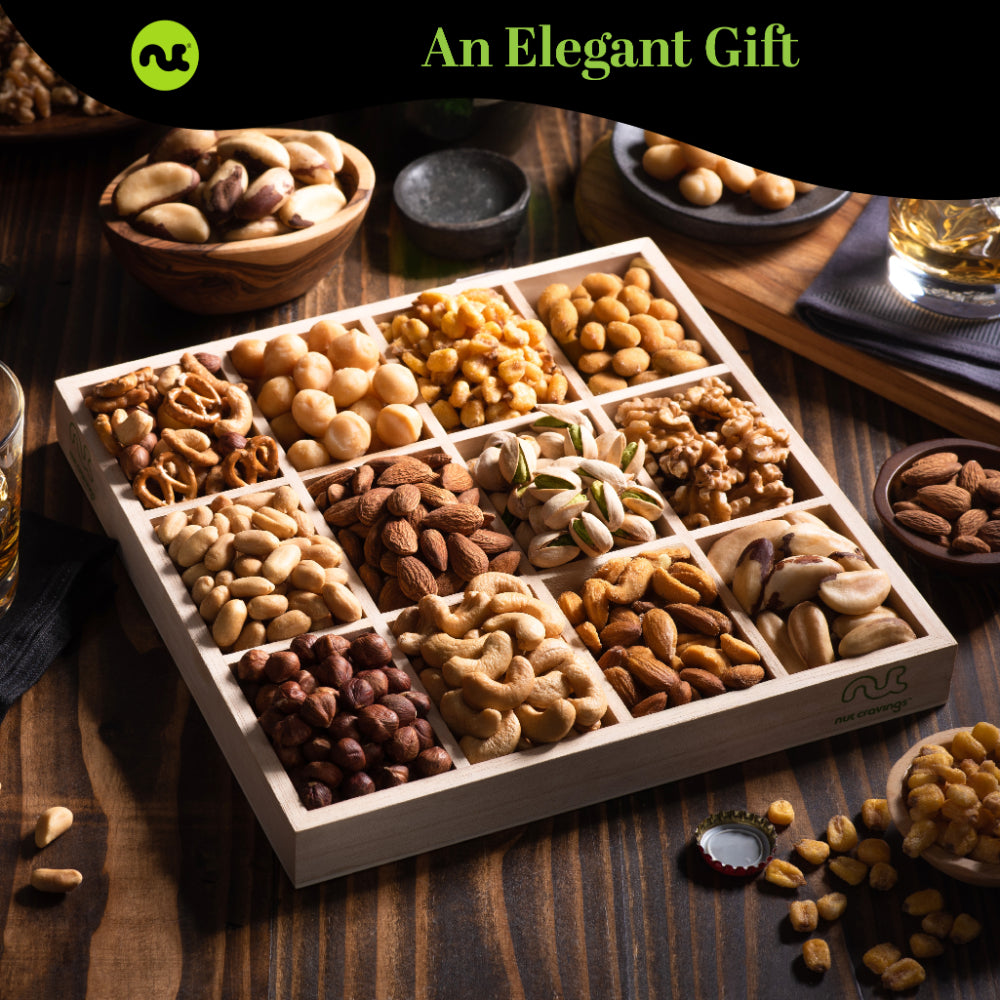 Mixed Nuts & Dried Fruit Wood Gift Tray with Ribbon
